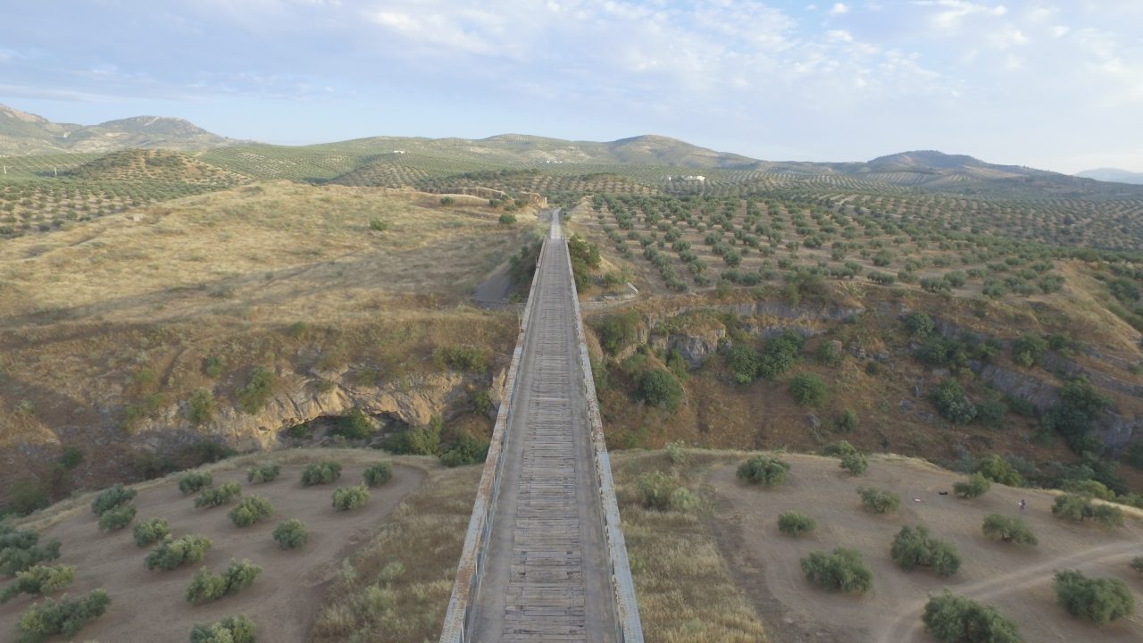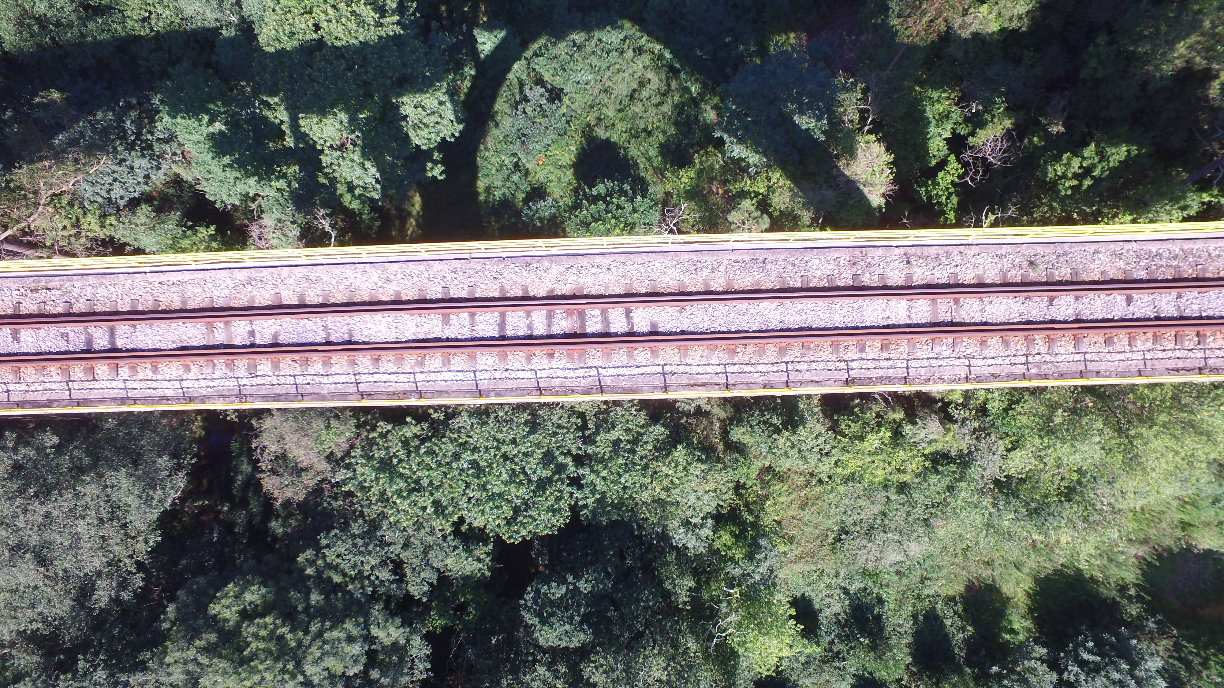 Trabajo de filmación del puente de Ferrocarriles de vía estrecha en Tapia de Casariego (Asturias)